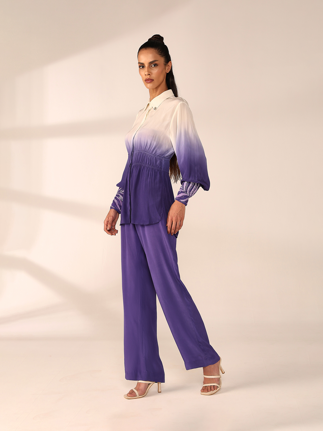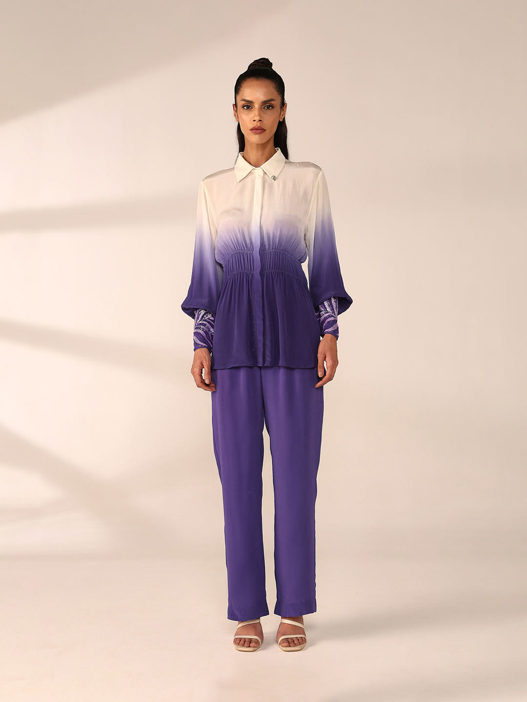 A relaxed silhouette with delicate elasticated detailing across the waist with a beautiful detailed cuff embroidery paired with straight comfort...